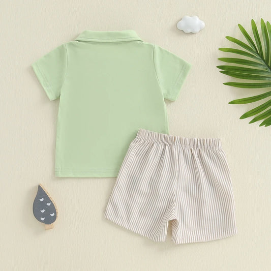 Baby Boys Shorts Set Short Sleeve Embroidery Duck T-shirt with Striped Shorts Summer Outfit
