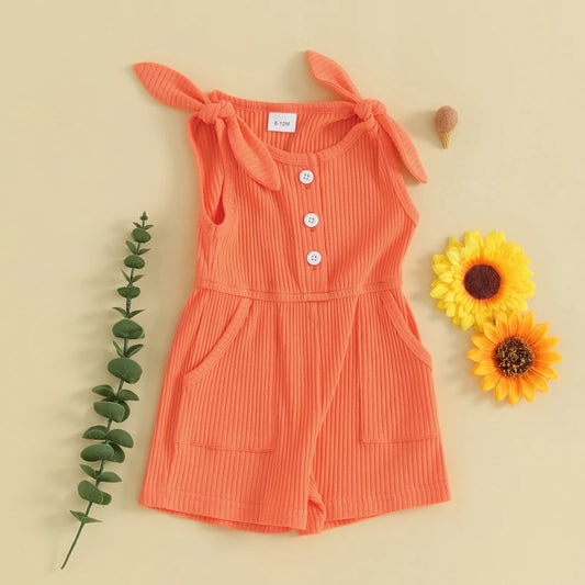 Toddler Kids Girls Rompers Shorts 4 Colors Solid Sleeveless Ribbed Knitted Jumpsuit Overalls Summer Clothes