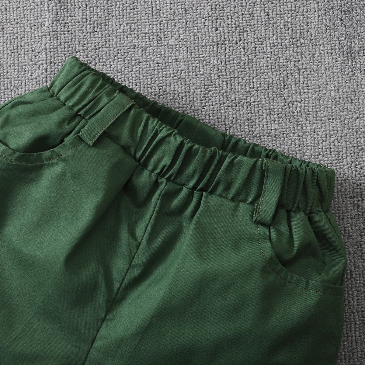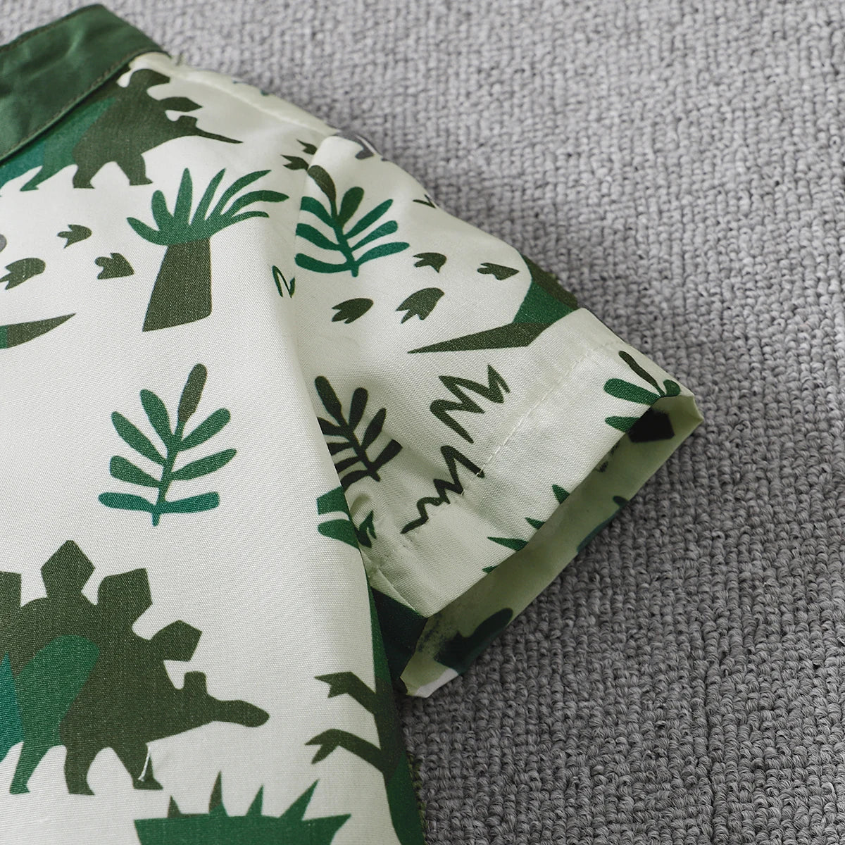 Toddler Boy 2Pcs Summer Outfits Short Sleeve Button Down Shirt Solid Elastic Waist Shorts Set