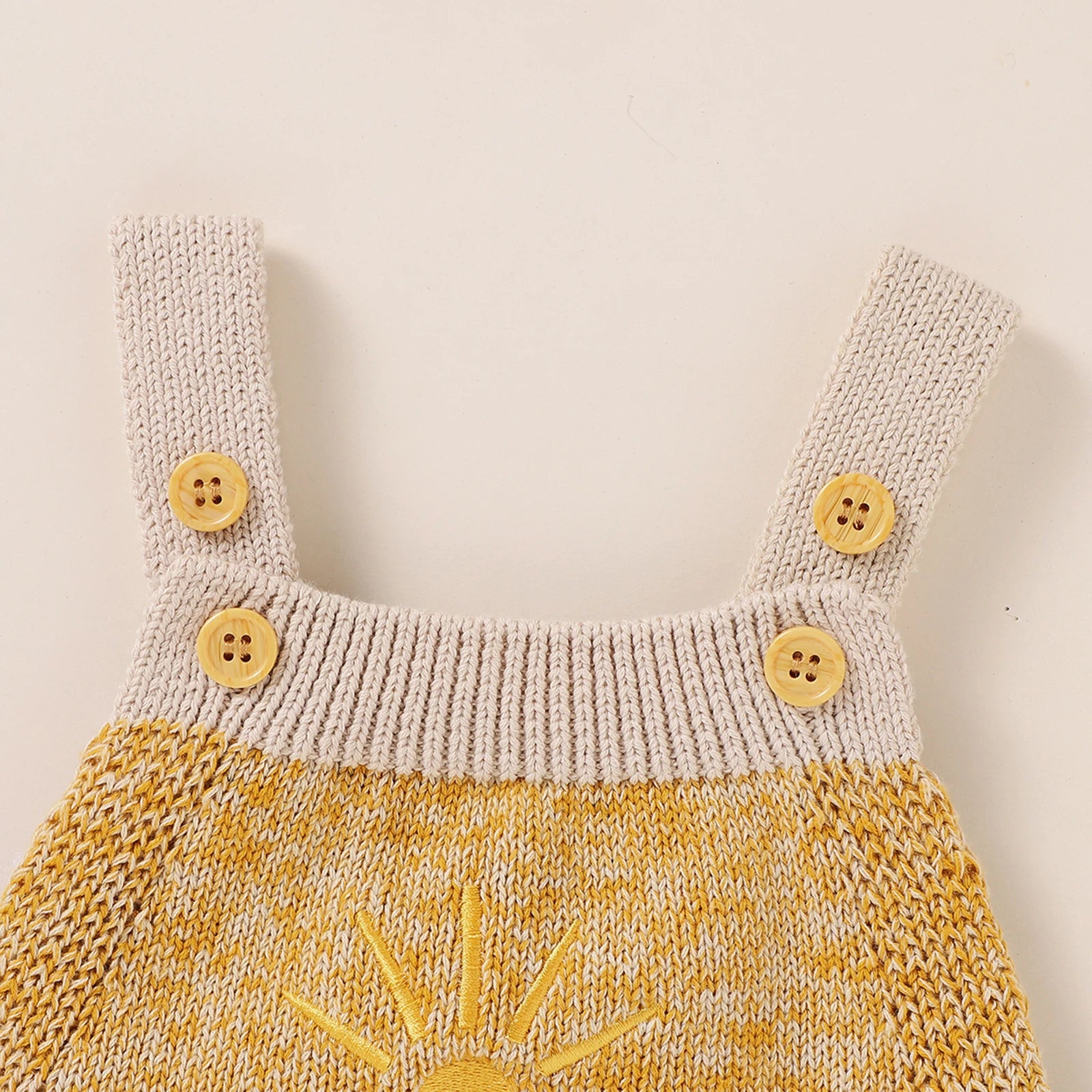Newborn Baby Boy Girl Autumn Bodysuit Sleeveless Knitting Sun Printed Jumpsuit 2Styles