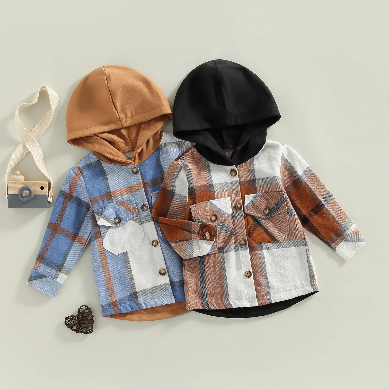 Little Boys Plaid Long Sleeve Hooded Shirt Coat 2 Colors