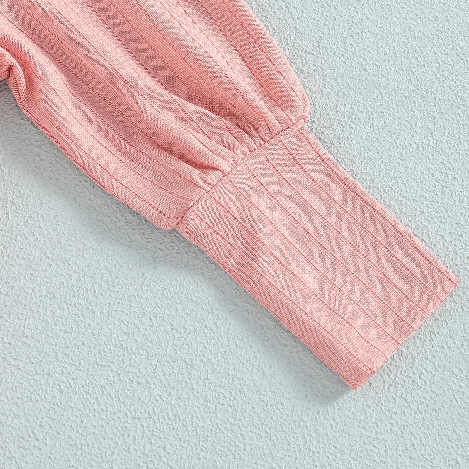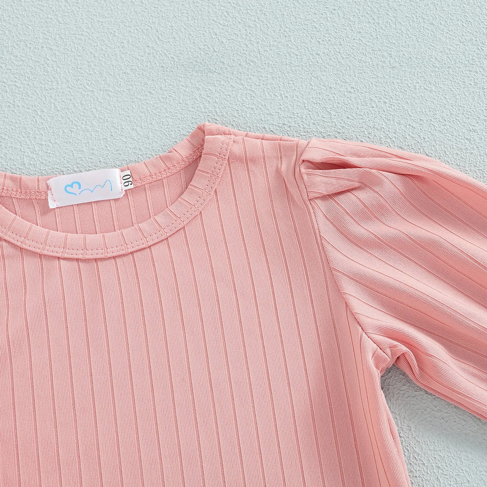 Toddler Girls 3Pcs Outfits Solid Ribbed Round Neck Long Sleeve Tops Plaid Long Pants + Belt Set