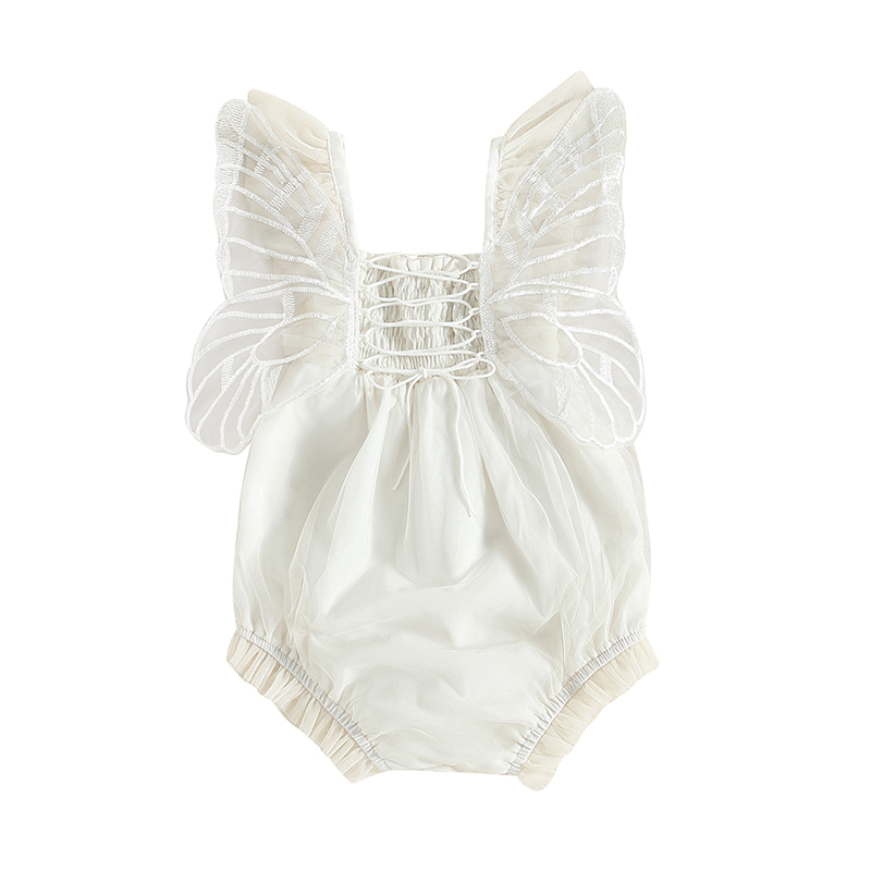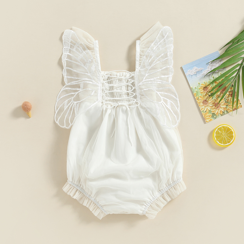Newborn Baby Girls Bodysuit Fly Sleeve Embroidery Pleated Lacing Summer Jumpsuit
