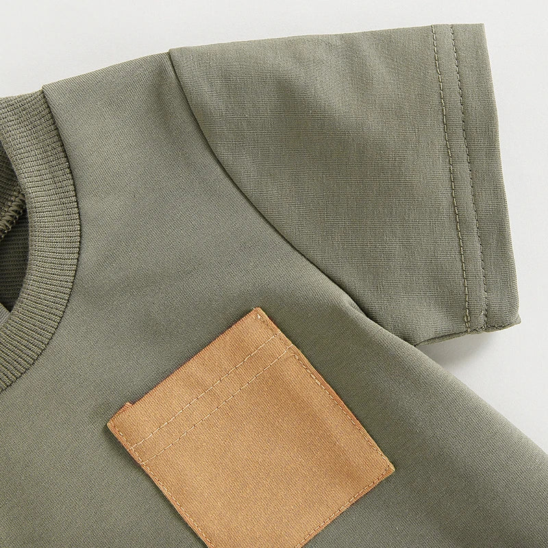 Baby Kids Boys 2Pcs Summer Set Short Sleeve Crew Neck T-shirt with Striped Shorts Outfit