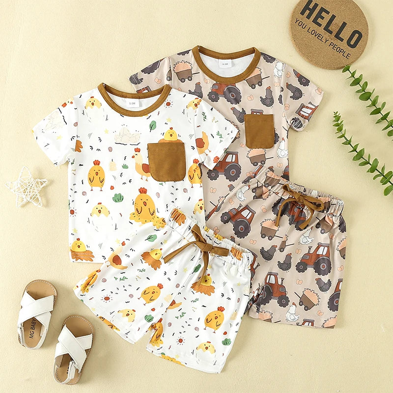 Toddler Boy Girl Summer Clothes Cute Farm Baby Chicken Outfit Set Short Sleeve Cartoon T-Shirt and Shorts