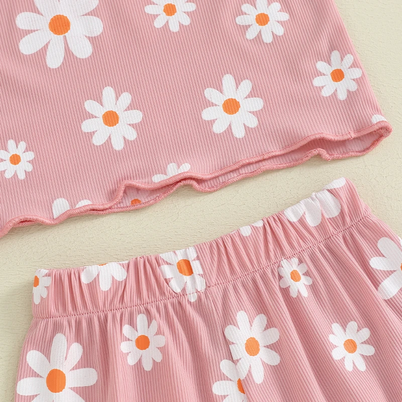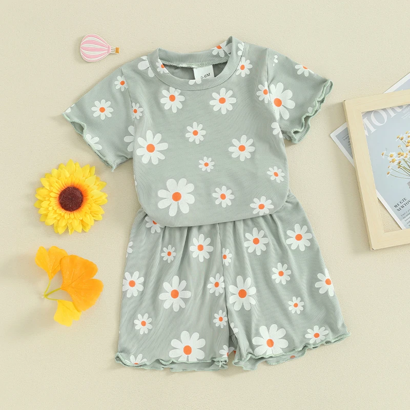 Toddler Baby Girl Summer Clothes Floral Short Sleeve Crewneck T-Shirts Shorts Set Outfit