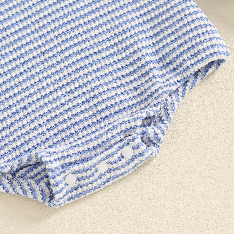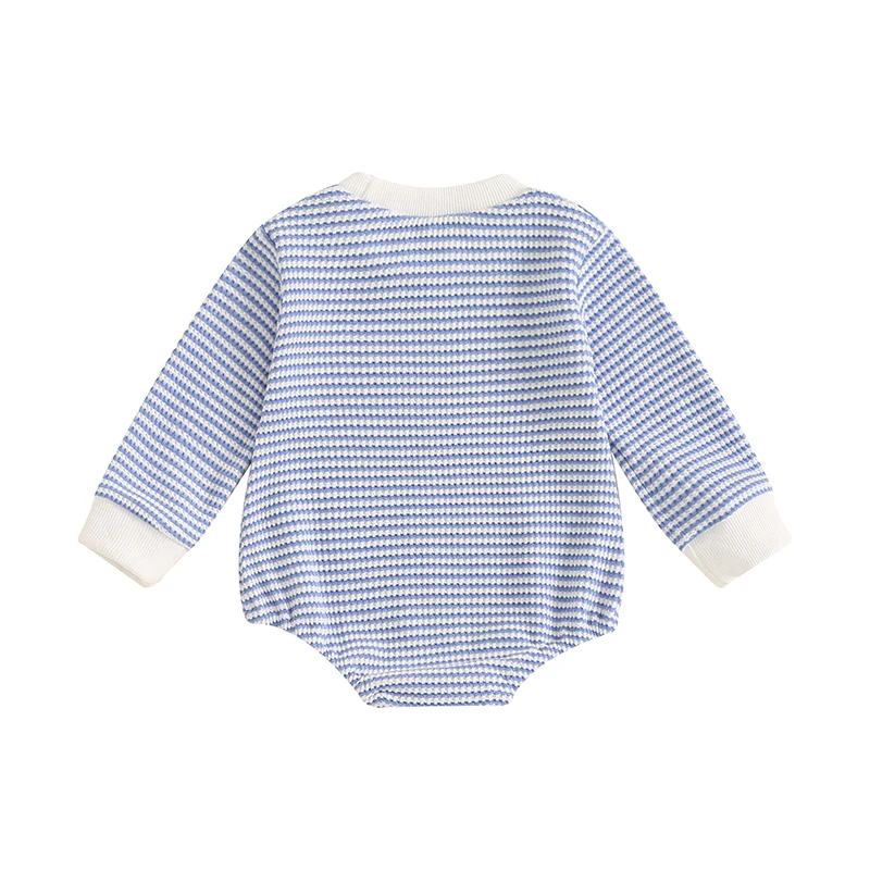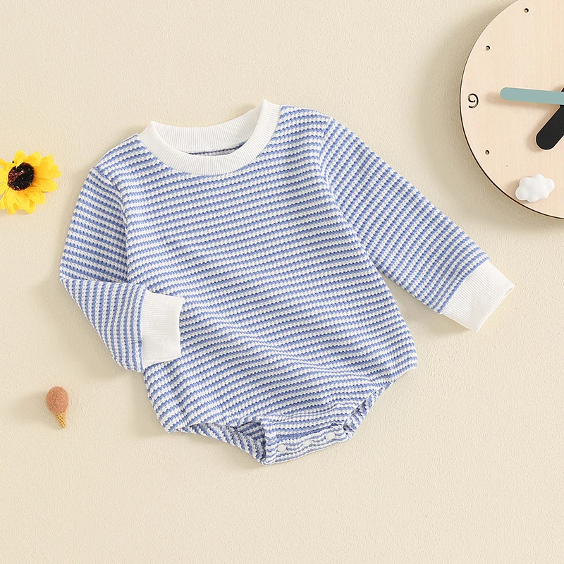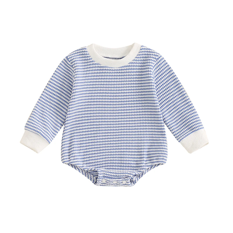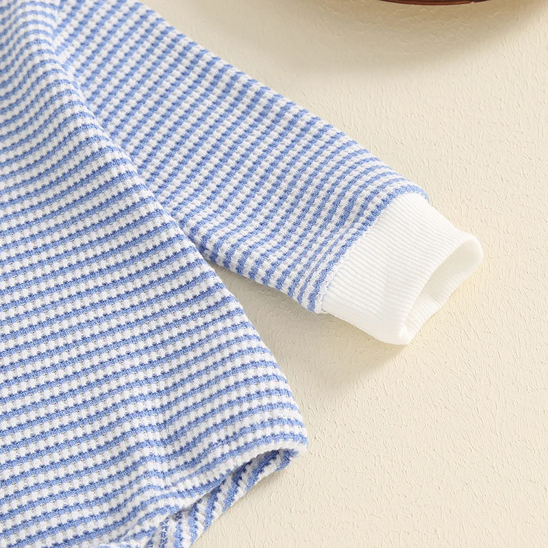 Toddler Waffle Sweatshirt Romper Casual Stripe Print Long Sleeve Jumpsuit