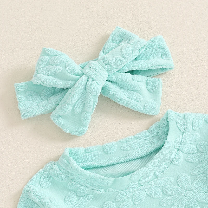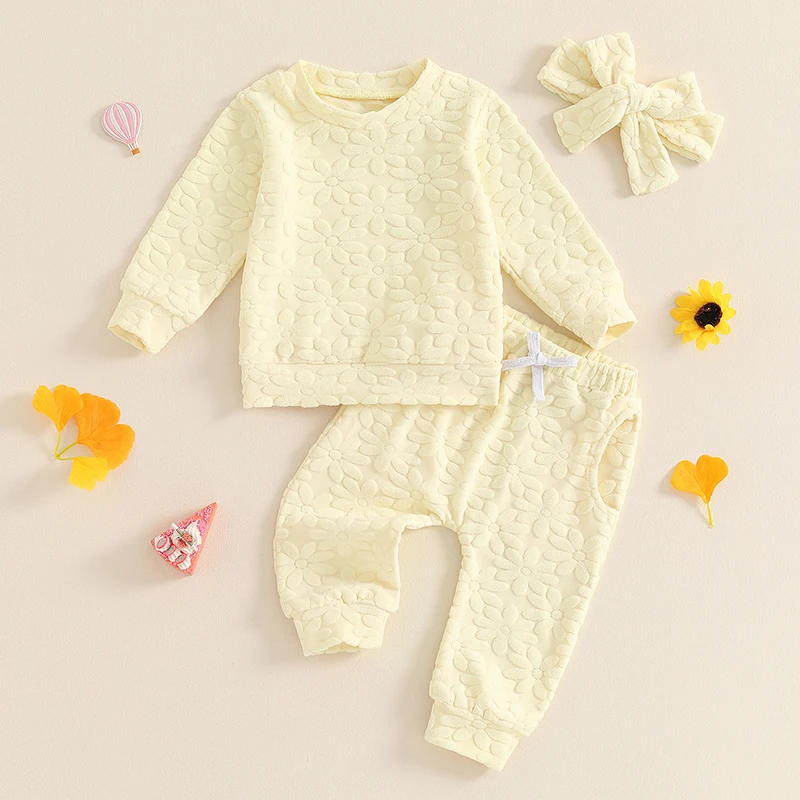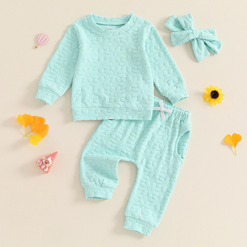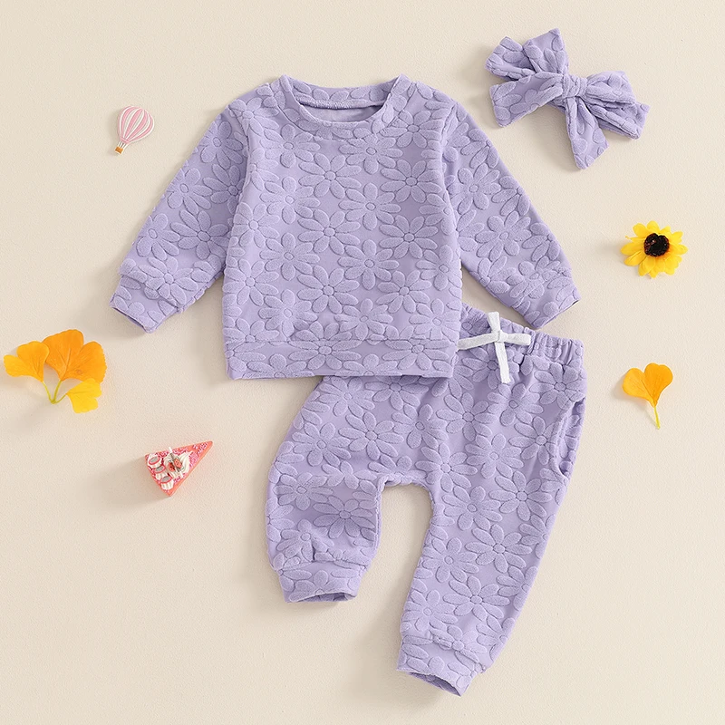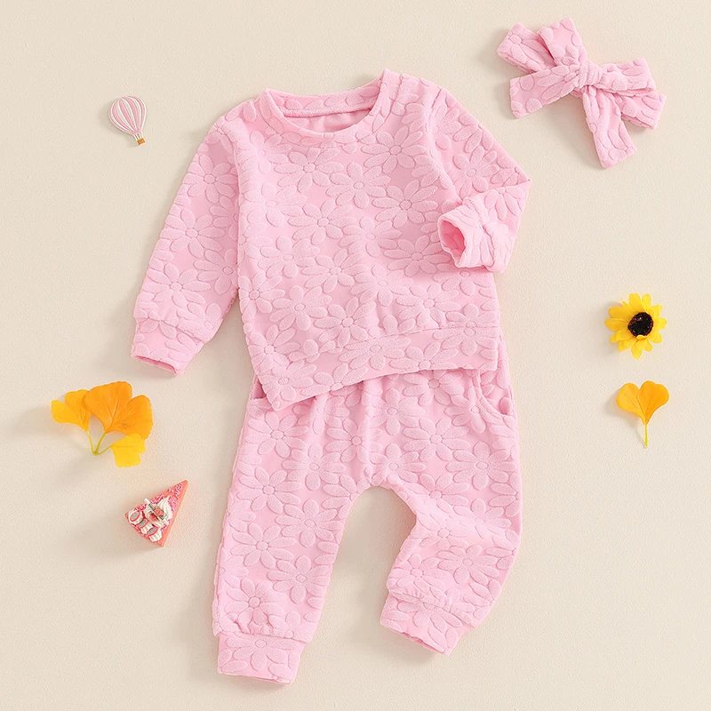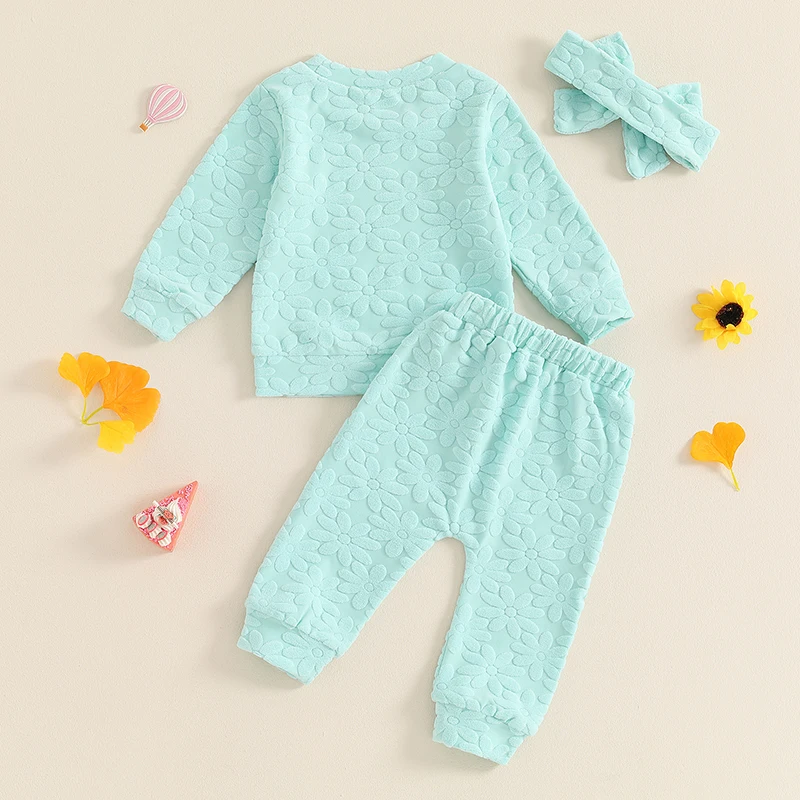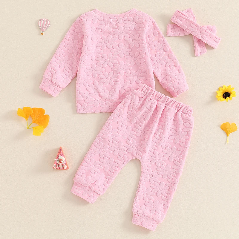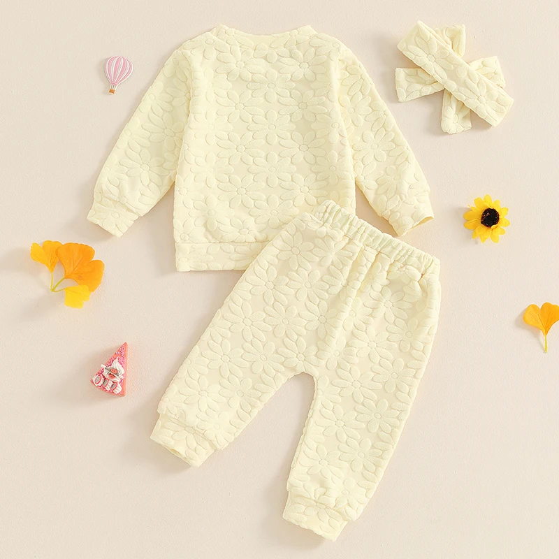 Toddler Girl Fall Outfit Daisy Embroidery Long Sleeve Sweatshirt with Elastic Waist Pants Headband Set
