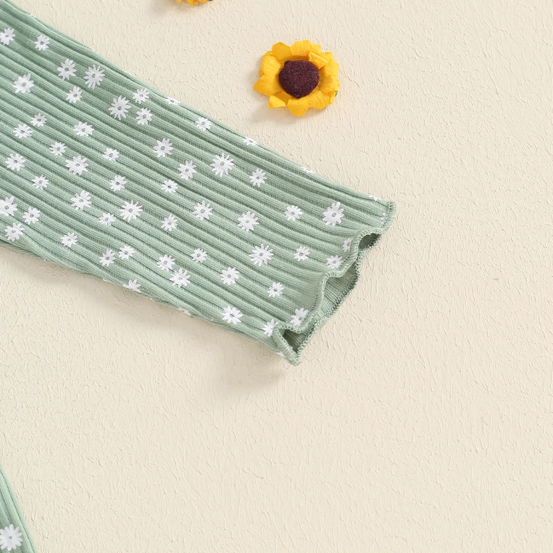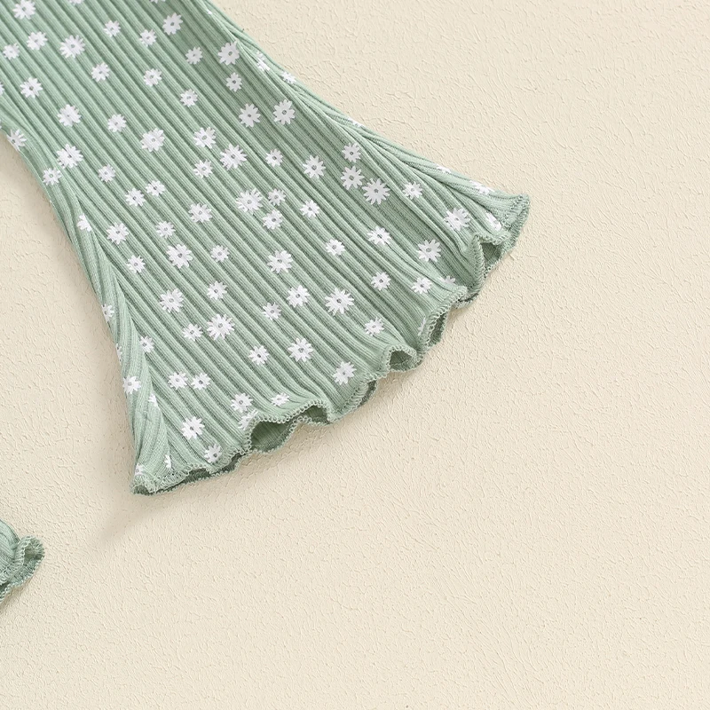 Baby Girl 2Pcs Fall Outfits Ruffle Long Sleeve Lettuce Trim Tops + Flare Pants Set Toddler Clothes