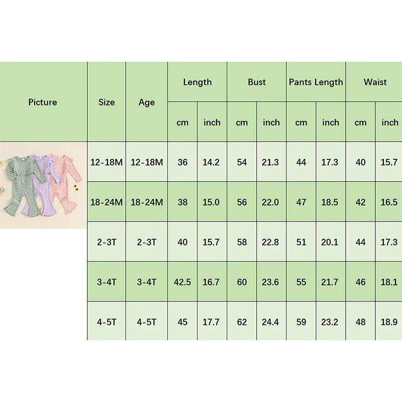 18-24M Tops Length: 14.96 Bust: 22.05 Pants Length: 18.5 Waist: 16.54 Advised Age: 18-24 Months