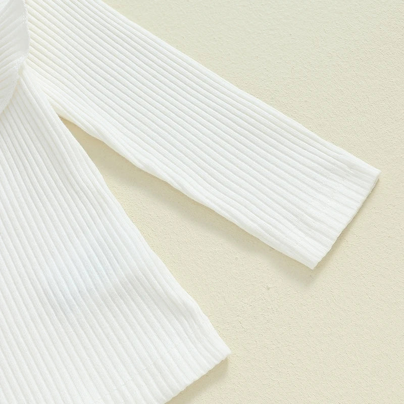Toddler Girl Fall Outfits Solid Color Ribbed Knit Ruffles Crew Neck Long Sleeve Tops Plaid Skirts Hat Set
