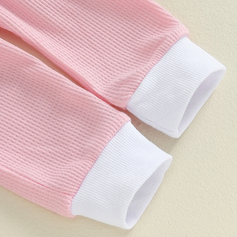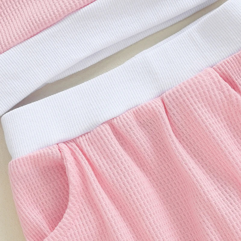 Toddler Girl Fall Outfits Bowknot Print Crew Neck Long Sleeve Waffle Sweatshirts and Long Pants 2Pcs Set