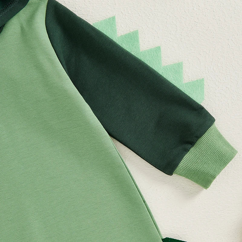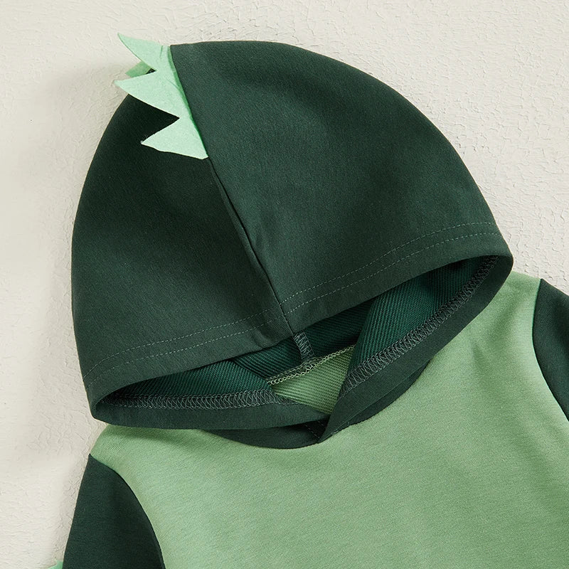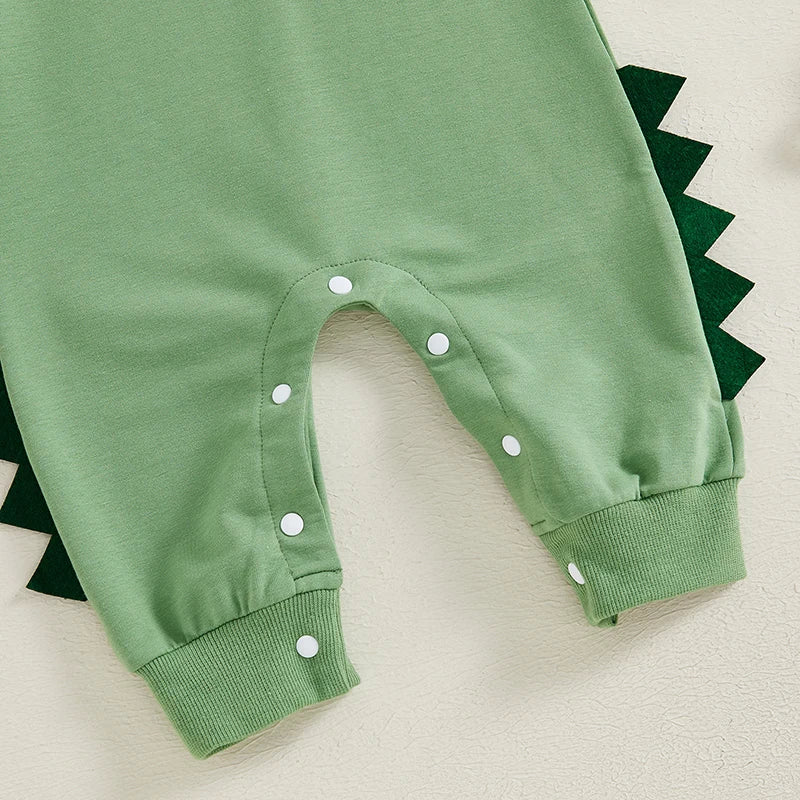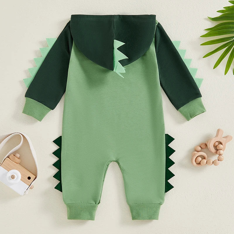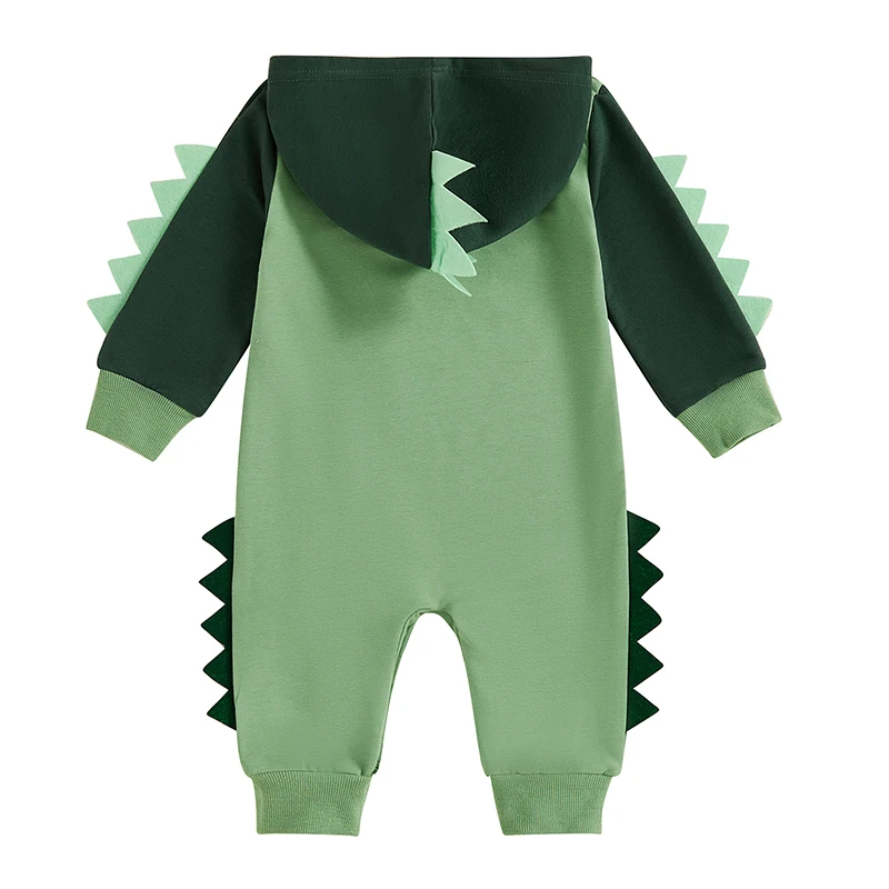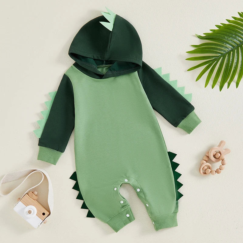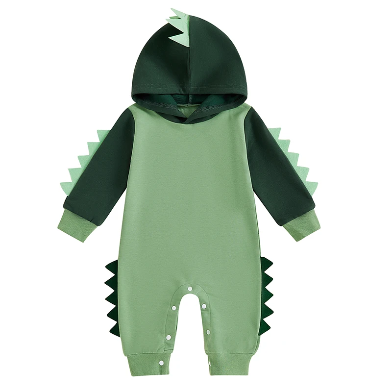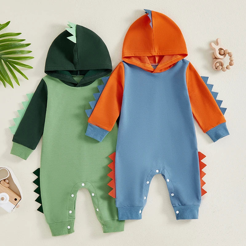 Baby Boy Dinosaur Shaped Hoodie Romper Contrast Color Long Sleeve Bodysuit Jumpsuit