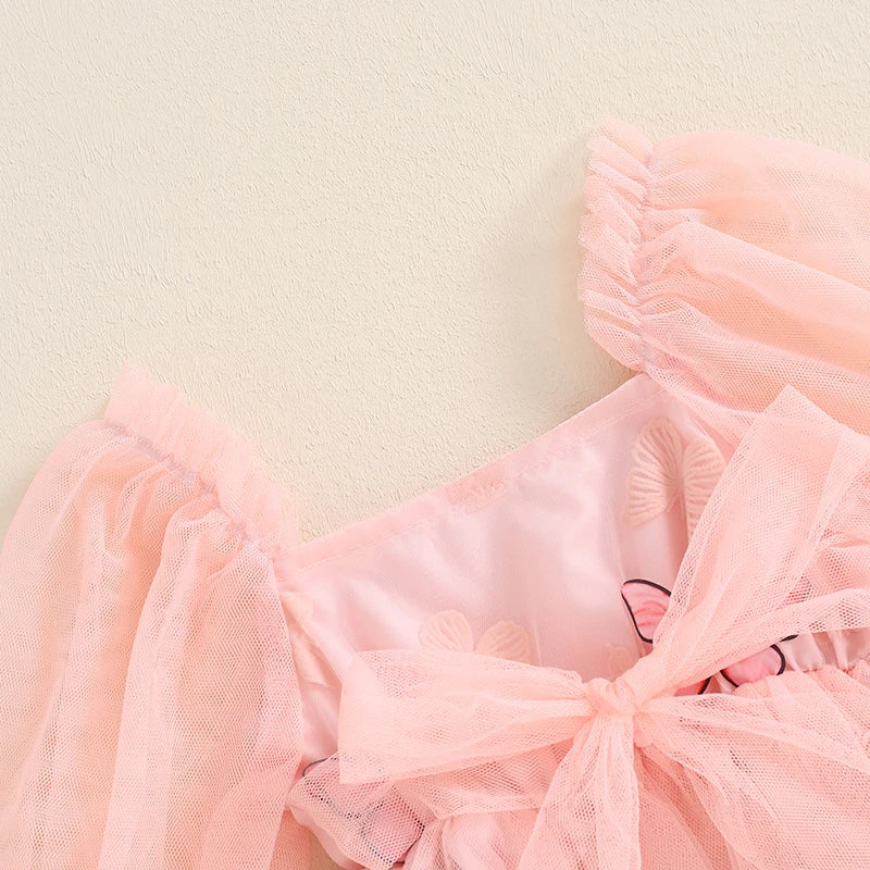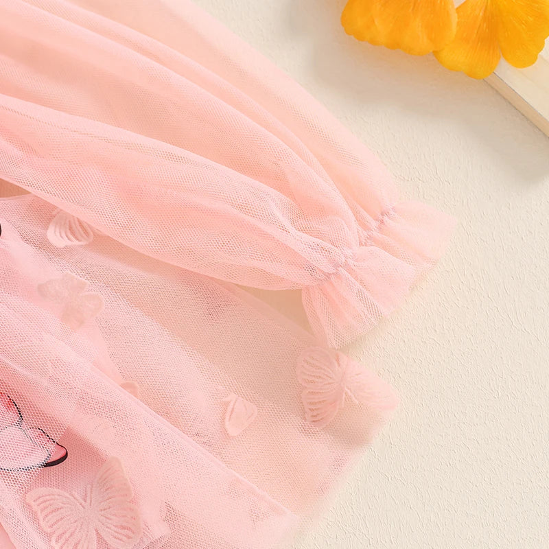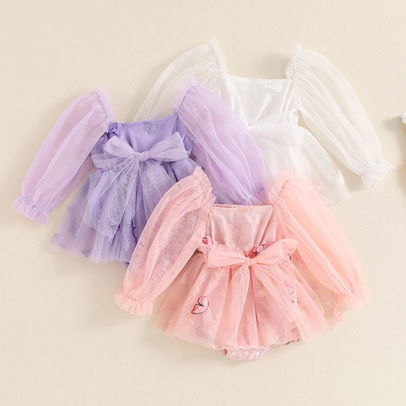 Baby Girls Mesh Romper Dress Butterfly Print Long Sleeve Jumpsuits for Newborn Toddler Cute Clothes