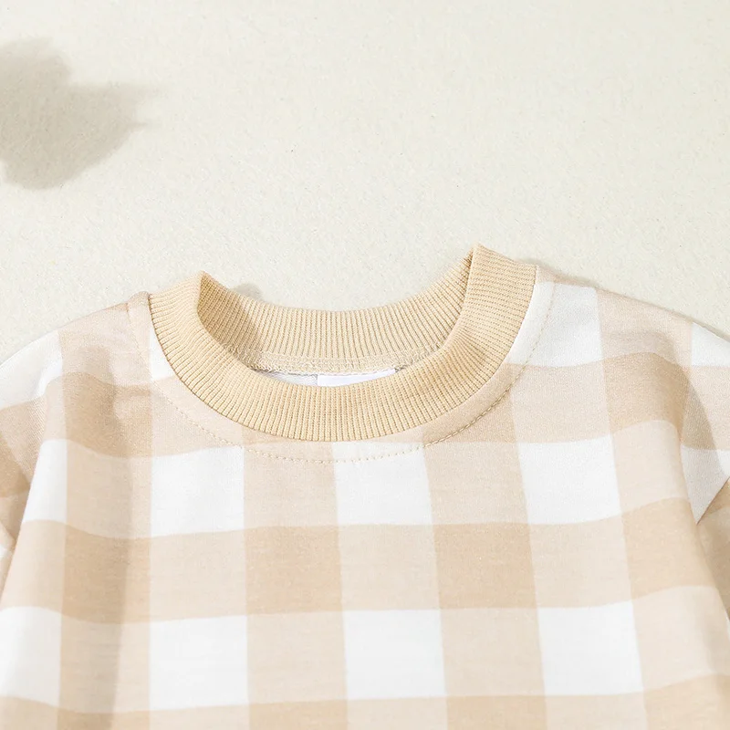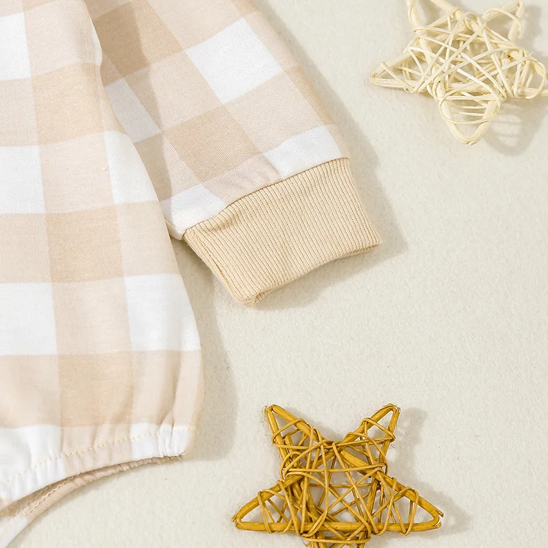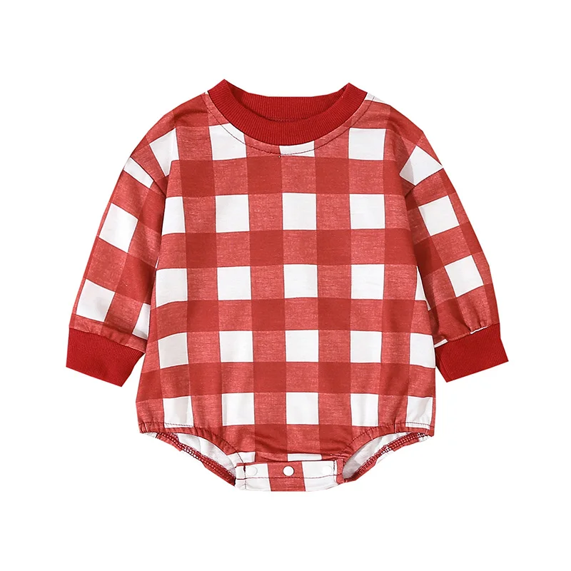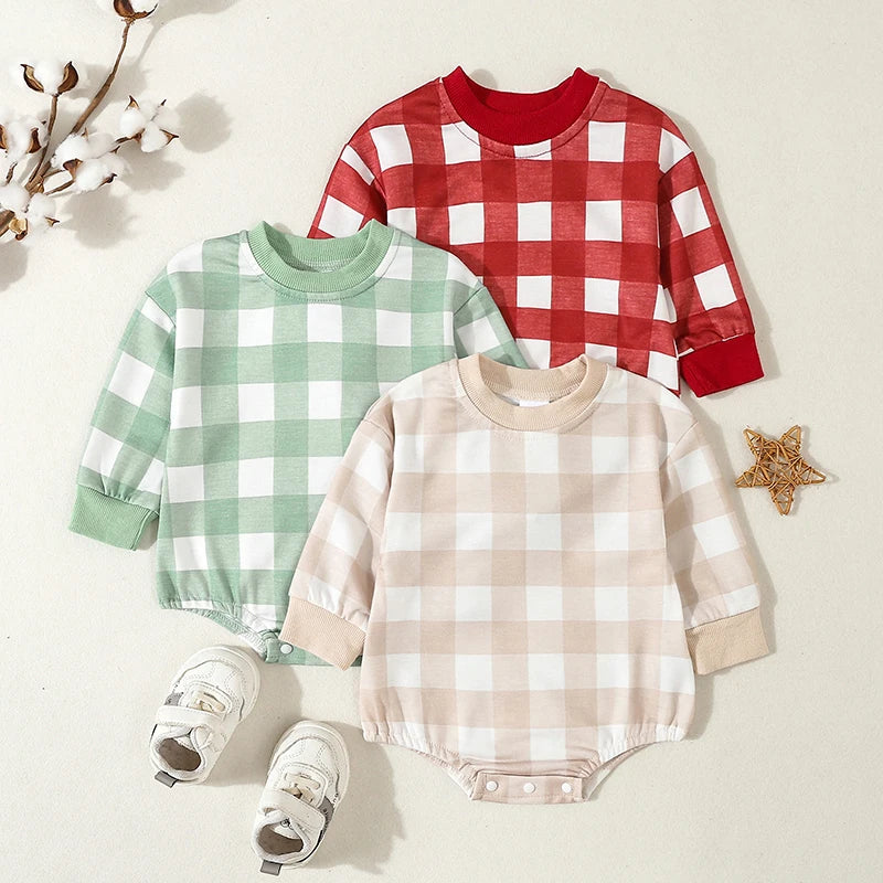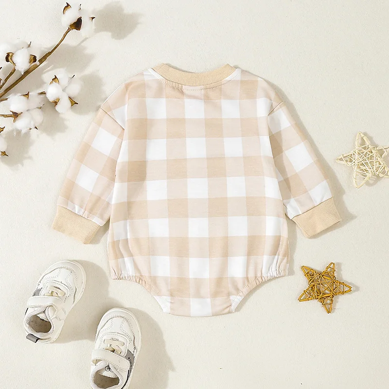 Baby Boys Sweatshirt Romper Plaid Long Sleeve Bodysuit Jumpsuit