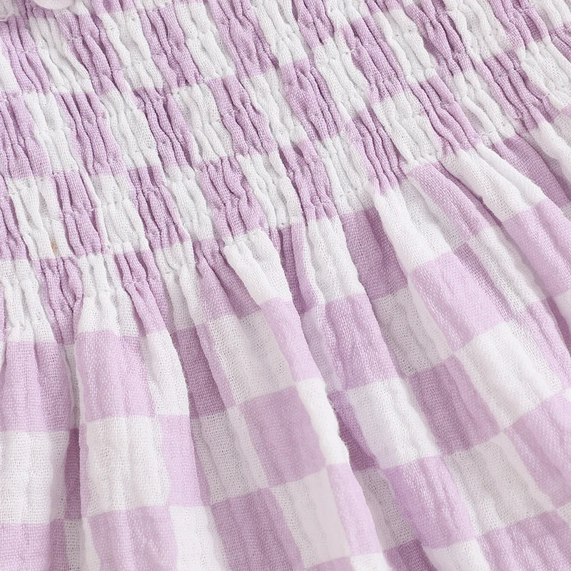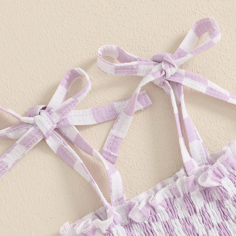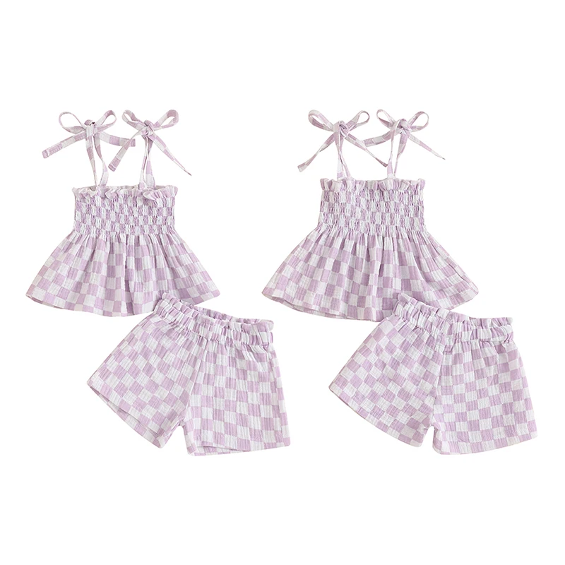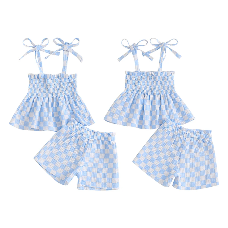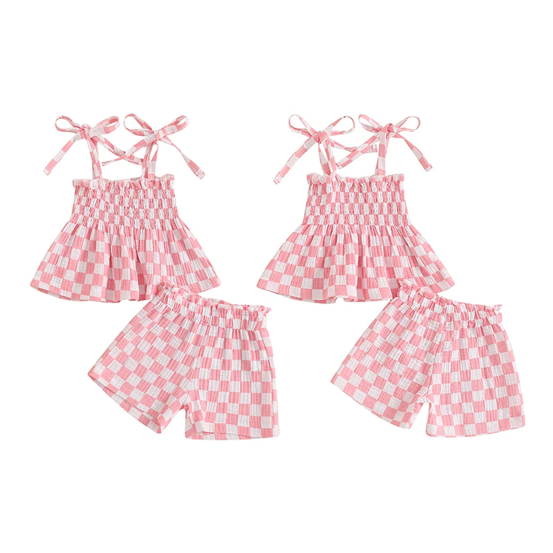 Toddler Baby Girl Summer Clothes Plaid Print Smocked Camisole + Elastic Waist Shorts 2Pcs Set