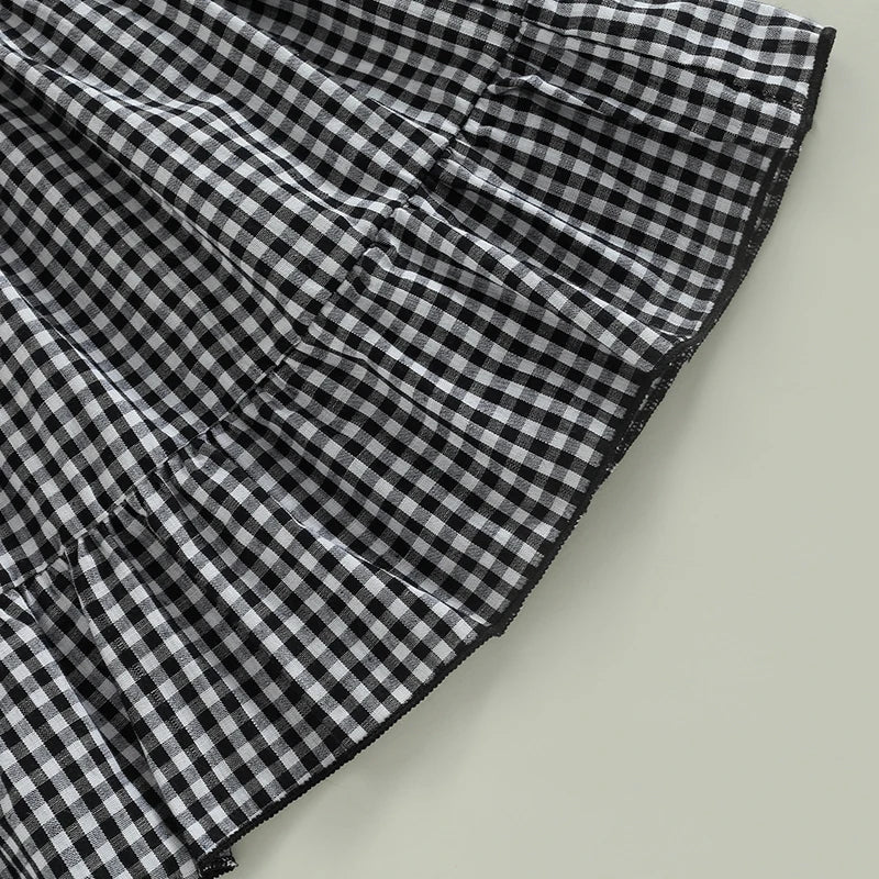 Summer Toddler Girls Sweet Dress Short Puff Sleeve Plaid Printed Ruffles Knee Length A-Line Dress