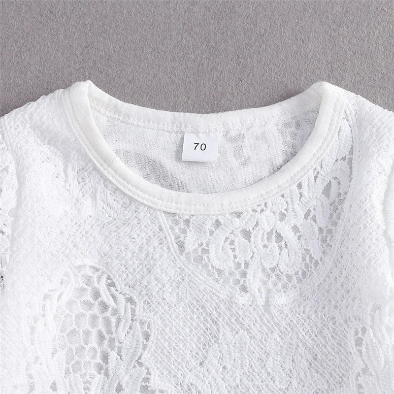 Baby Girls Fall Clothes Long Sleeve Lace Romper Suit Triangle Crotch Lace Top Hole Long Jeans 2Pcs Outfit