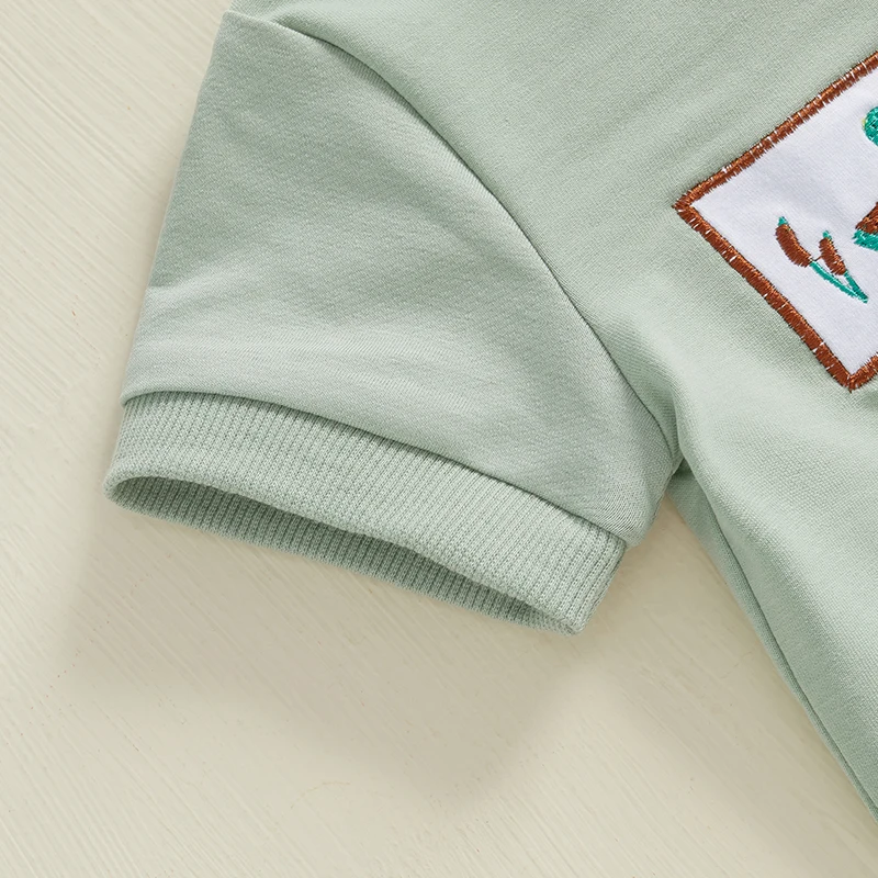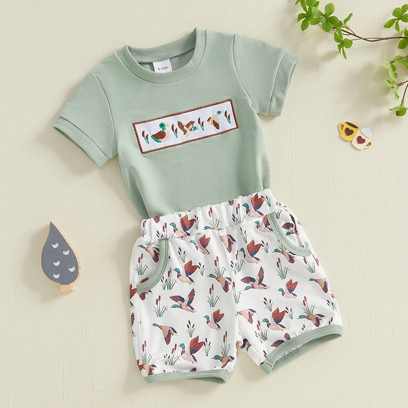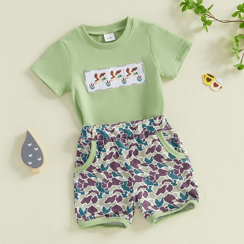 Toddler Baby Boys Summer Outfits Duck Embroidery Short Sleeves T-Shirt and Elastic Camouflage Shorts Clothes Set